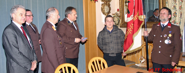 Kommandant BR Alfred Kraus konnte dazu den Florianiplakettenträger Bürgermeister DI Karl Grammanitsch, Vize-Bürgermeisterin Sandra Hengl, Ortsvorsteher EBI Gerhard Kiesling, GGR EV Ing. Franz Wagner, GGR Willi Rohm, GR V Thomas Pal, den Florianiplakettenträger GR Franz Christ, GR Ing. Andreas Grünbeck und Ehrenkommandant EHBI Heinz Holzinger sowie die Mitglieder der FF Schönfeld recht herzlich begrüßen.