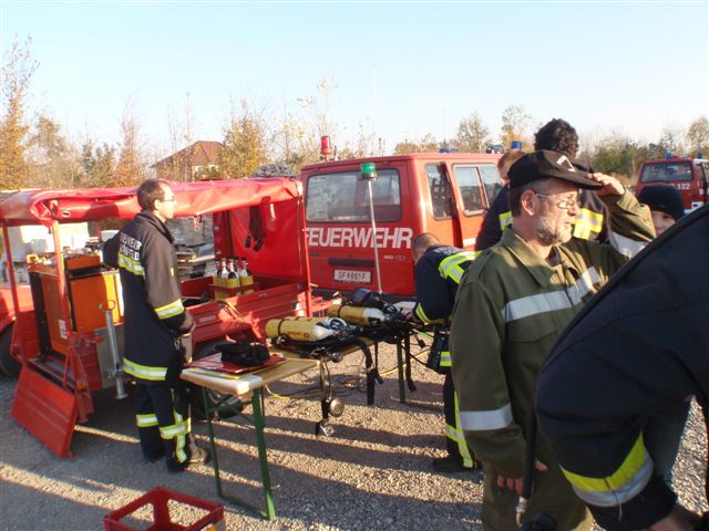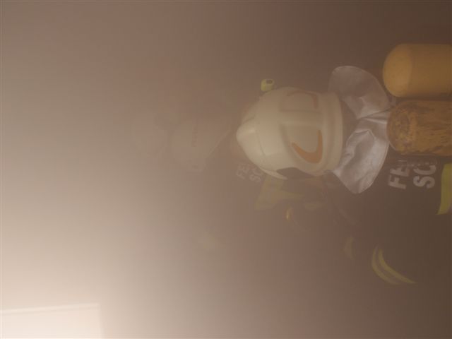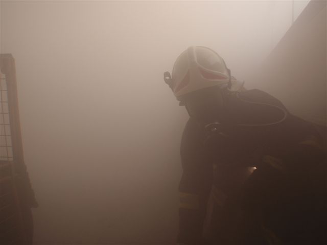 Ziel der Übung war das richtige Vorgehen in einem Gebäude bei eingeschränkter Sicht und bei Hindernissen wie eine Montagegrube. Eingesetzt waren: