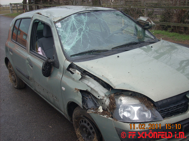 Am 3.1.2011 um 16:28 Uhr kam es auf spiegelglatter Fahrbahn bei der Ortsausfahrt in Schönfeld Richtung Untersiebenbrunn zu einem Frontalzusammenstoß zweier PKWs.